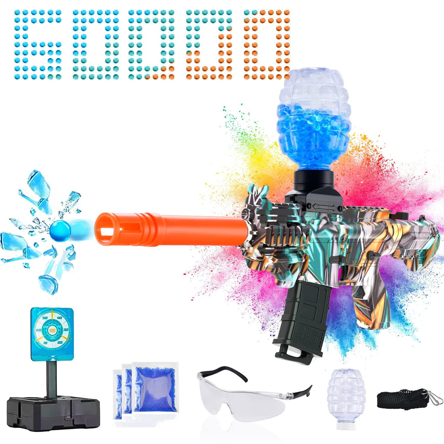 Amazon Com Lanzador Electrico De Bolas De Agua De Gel Con Mas De 60000 Cuentas De Agua Y Gafas Juguete De Navidad Para Actividades Al Aire Libre Regalos De Cumpleanos De Mas De
